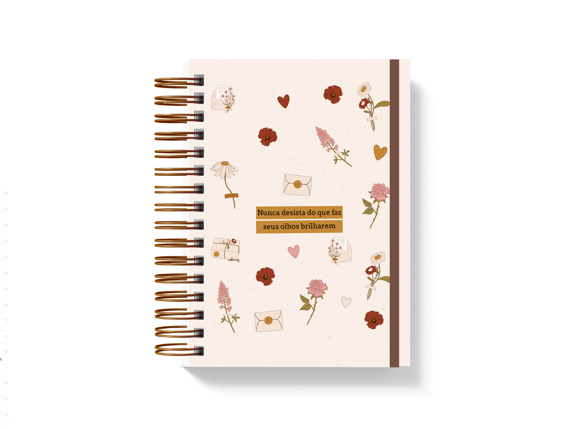 -Planner Permanente: Tamanho A5 (15,5 x 21,5cm), 120 folhas 90g impressas (dados pessoais, calendario 2026 e 2027, planejamento anual, vision board, metas e planos de ação, roda da vida, meu ano em cores, controle de viagens, fitness, leituras, séries e filmes, cuidados com a saúde, wishlist, logins e senhas, visão mensal, controle financeiro; dois modelos de visão semanal), envelope plástico canguru, capa dura laminada, wire-o e fechamento em elástico. Acompanha régua marca-página.