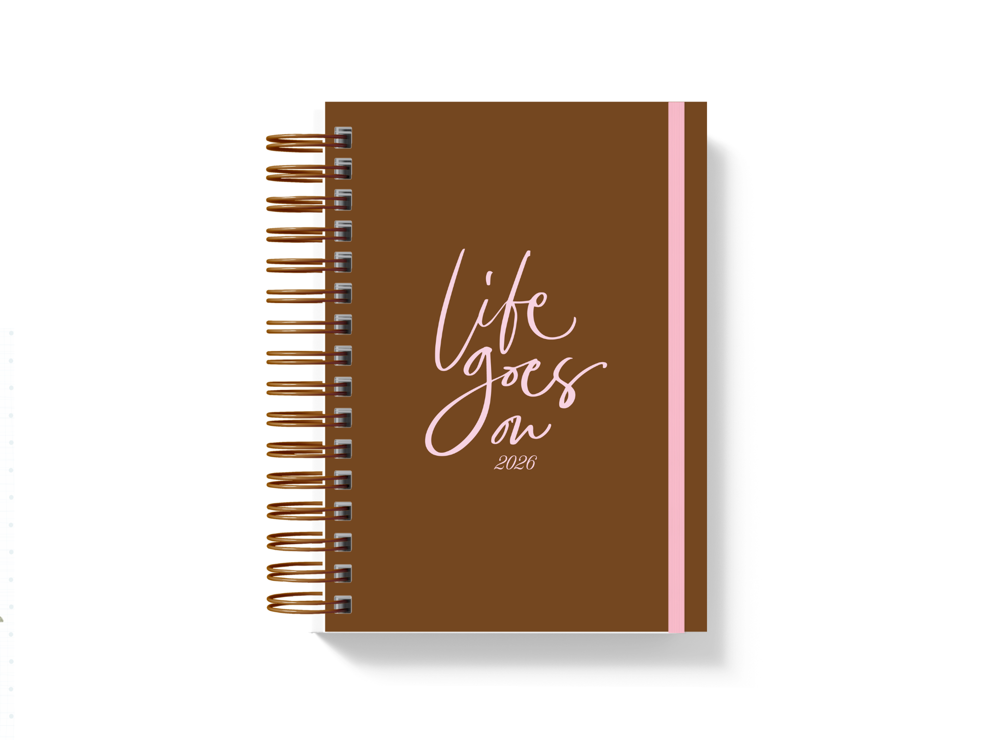 - Agenda 2026 (2 dias por página): Tamanho A5 (15,5 x 21,5cm), 113 folhas 90g impressas (dados pessoais, calendários 26 e 27, planejamento anual, metas e planos de ação, cuidados com a saúde, logins e senhas) envelope plástico canguru, capa dura laminada, wire-o e fechamento em elástico. Acompanha régua marca-página.