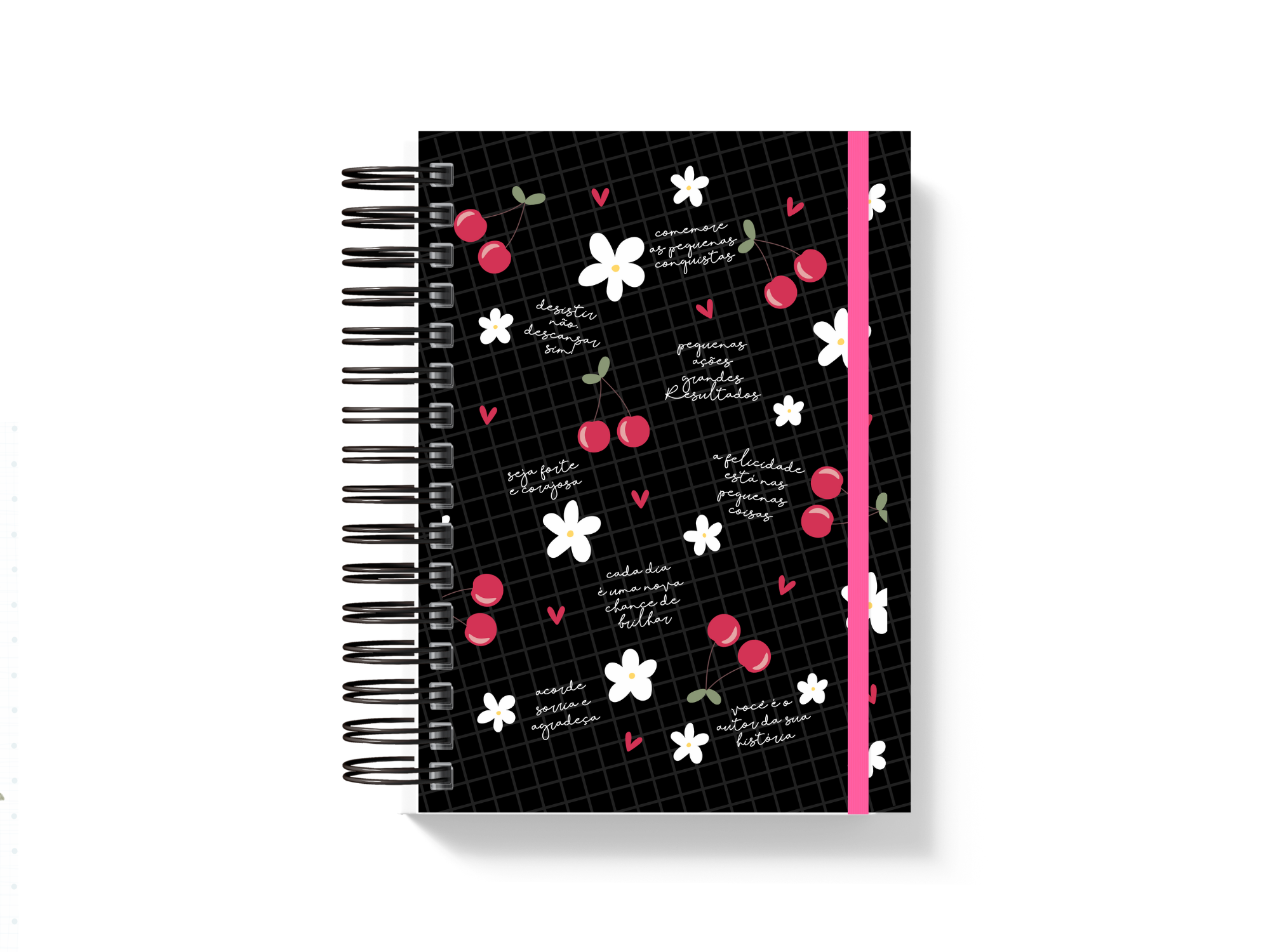 -Planner Permanente: Tamanho A5 (15,5 x 21,5cm), 120 folhas 90g impressas (dados pessoais, calendario 2026 e 2027, planejamento anual, vision board, metas e planos de ação, roda da vida, meu ano em cores, controle de viagens, fitness, leituras, séries e filmes, cuidados com a saúde, wishlist, logins e senhas, visão mensal, controle financeiro; dois modelos de visão semanal), envelope plástico canguru, capa dura laminada, wire-o e fechamento em elástico. Acompanha régua marca-página.